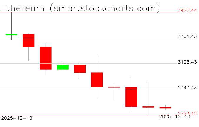 Ethereum charts on December 19, 2025