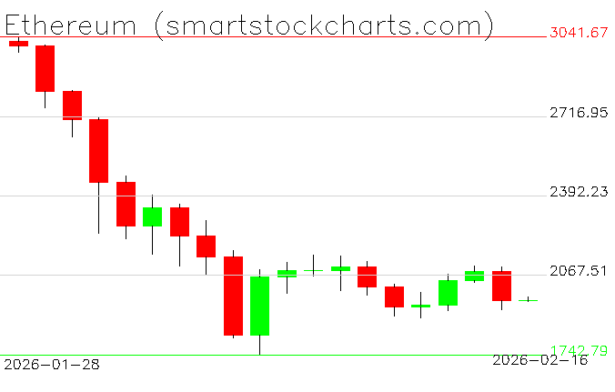 Ethereum charts on February 16, 2026