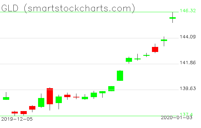 GLD charts on January 03, 2020