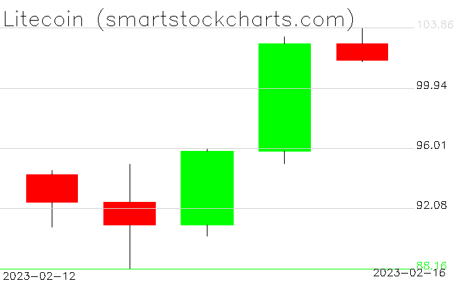 Litecoin charts on February 16, 2023