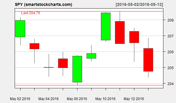 SPY charts on May 13, 2016