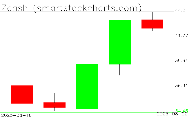 Zcash charts on August 22, 2025