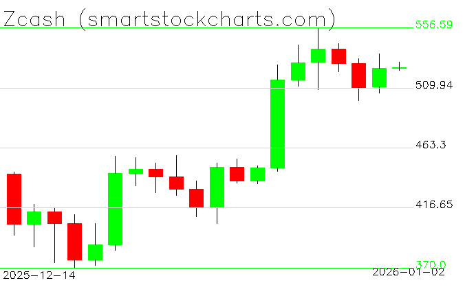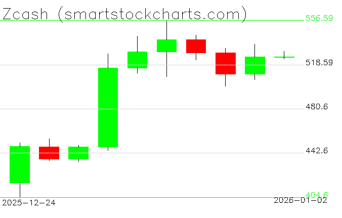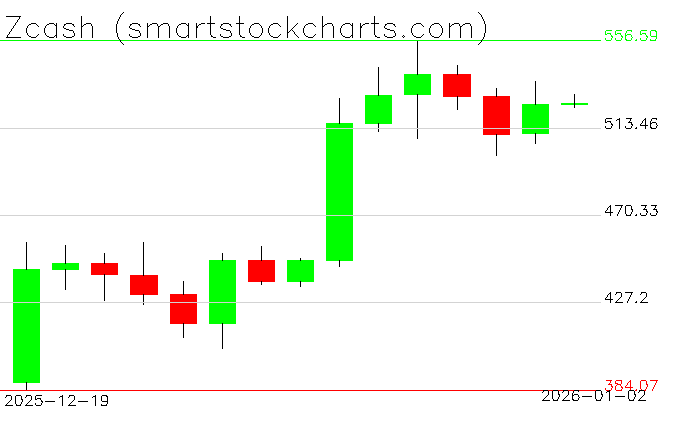 Zcash charts on January 02, 2026