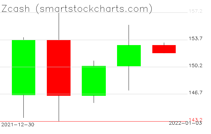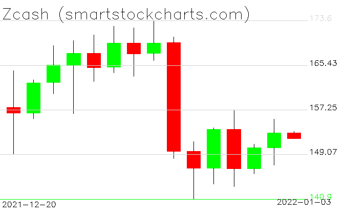 Zcash charts on January 03, 2022