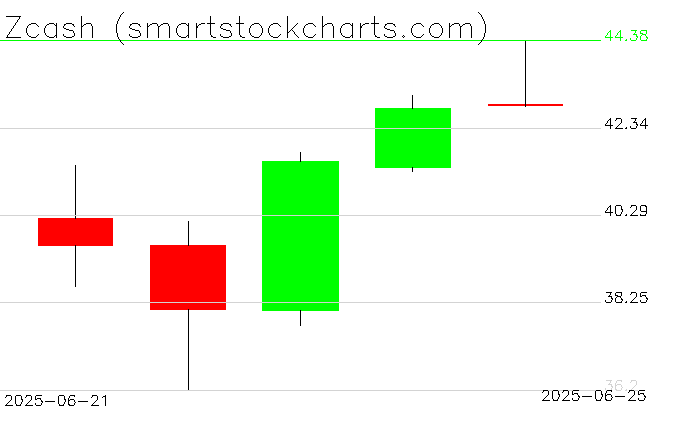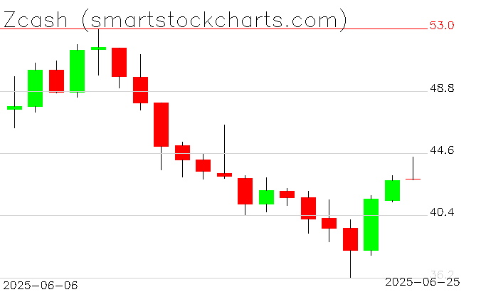 Zcash charts on June 25, 2025