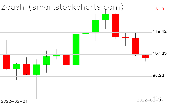Zcash charts on March 07, 2022