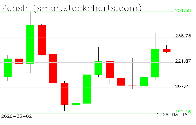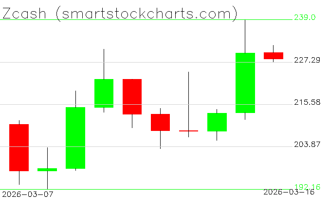 Zcash charts on March 16, 2026