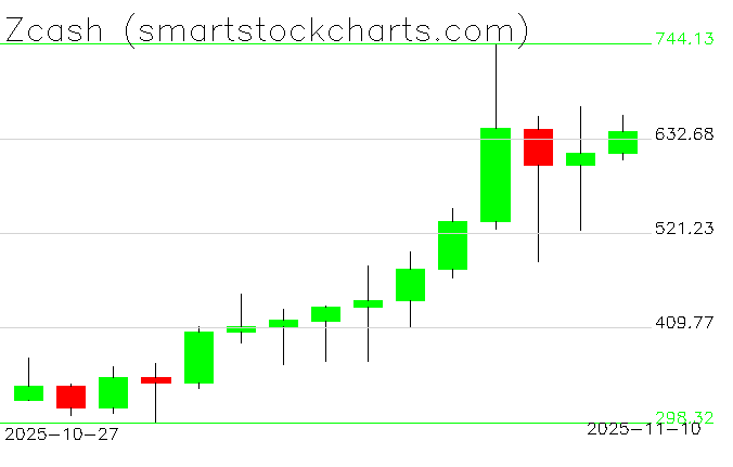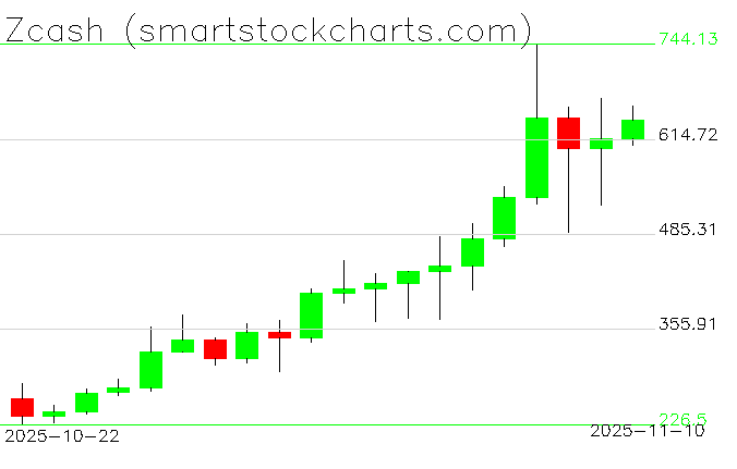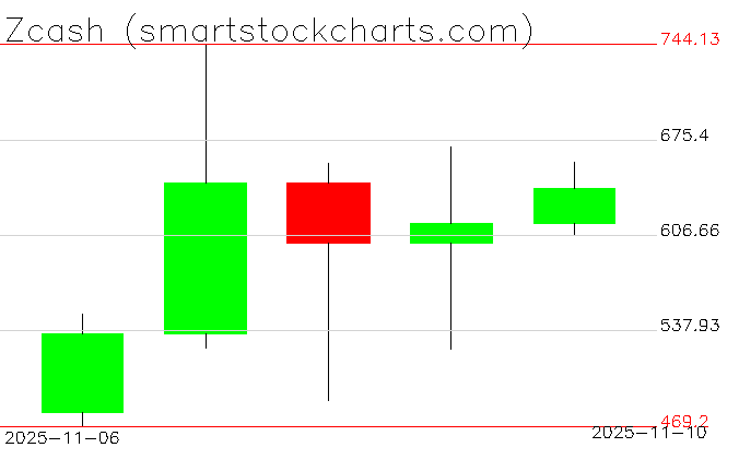 Zcash charts on November 10, 2025